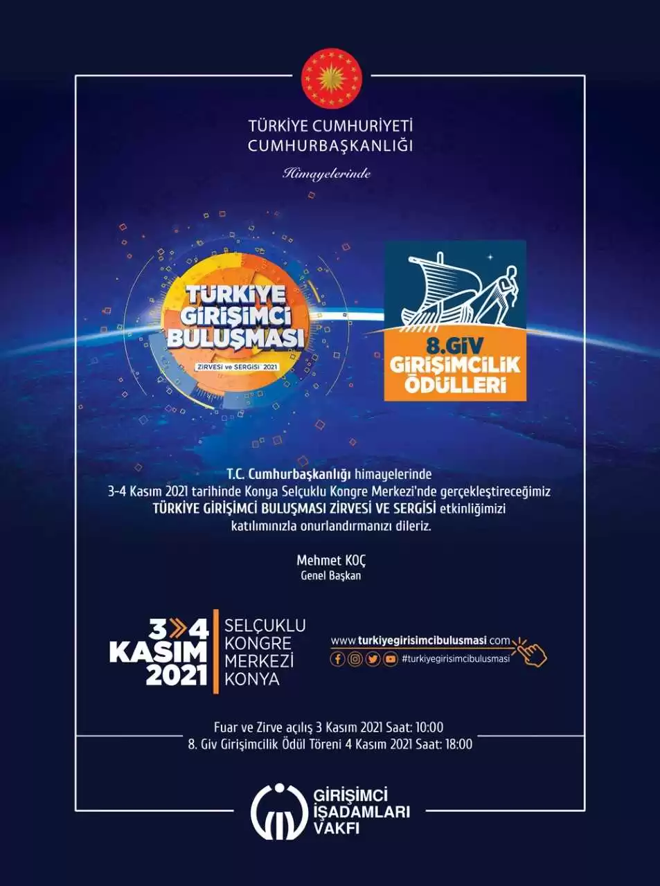 3-4 Kasım 2021 tarihlerinde Cumhurbaşkanlığı himayelerinde Girişimci İş Adamları Vakfı ile paydaş kamu kurumları ve kuruluşlar tarafından “Konya Selçuklu Kongre Merkezi”nde düzenlenecek “Türkiye Girişimci Buluşması ve Fuarı‘ndaki standımıza tüm müşteri ve ziyaretçileri davet ederiz.